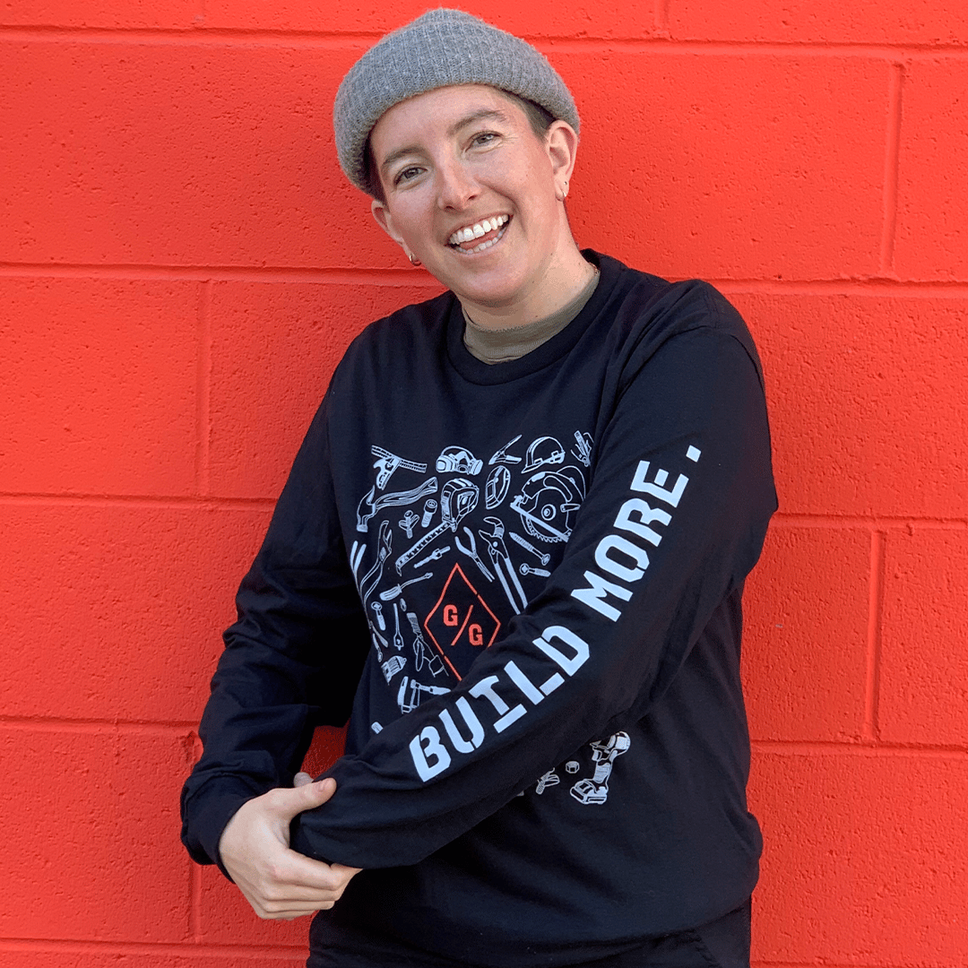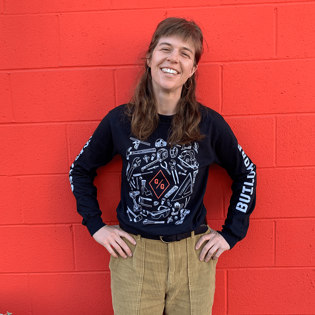 Our newest long sleeve t-shirt is here, just in time for winter! This long sleeve is the perfect addition to your wardrobe. The front graphic* boasts a variety of tools, and the text on the sleeves reads, "Fear Less. Build More."