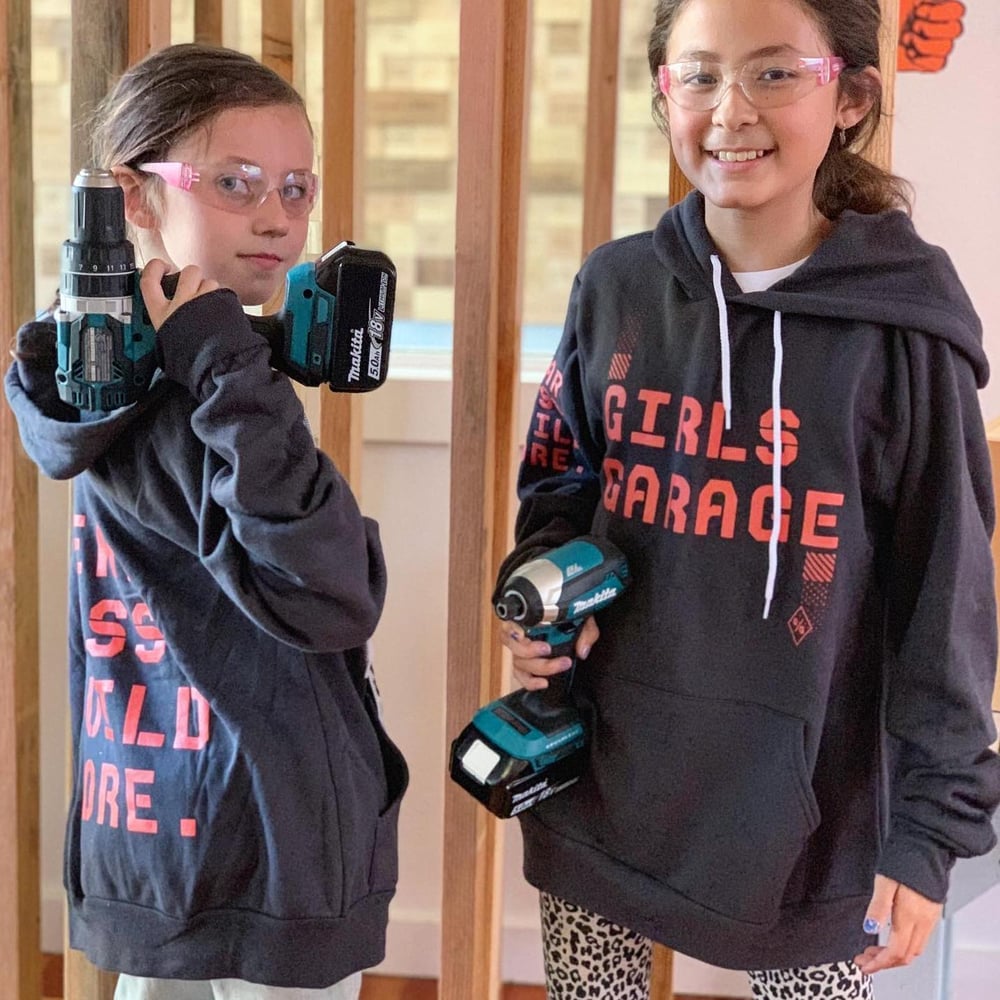 Rock your Fearless Builder Girl Pride! Be the first to own the brand new Girls Garage hoodie. Each hoodie has "Girls Garage" on the front and "Fear Less Build More" on right arm. These are the same puppy-dog-soft hoodies as our previous Camp H sweatshirts. Size XS (Unisex Adult) is equivalent to Youth Large.