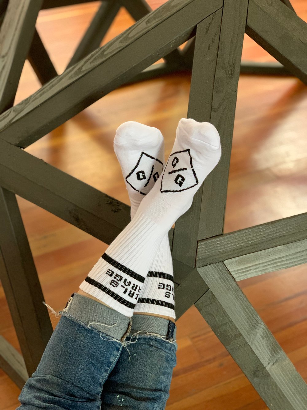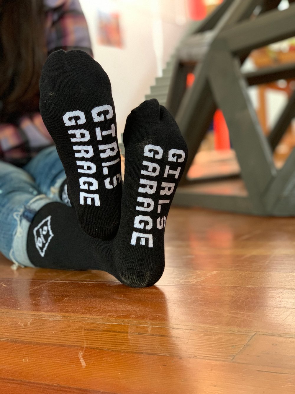 Drumroll, please....for the first time ever, we've got Girls Garage socks! Keep your toes warm while representing fierce women and gender-expansive builders. We've got a new color: tan! Unisex sizing.