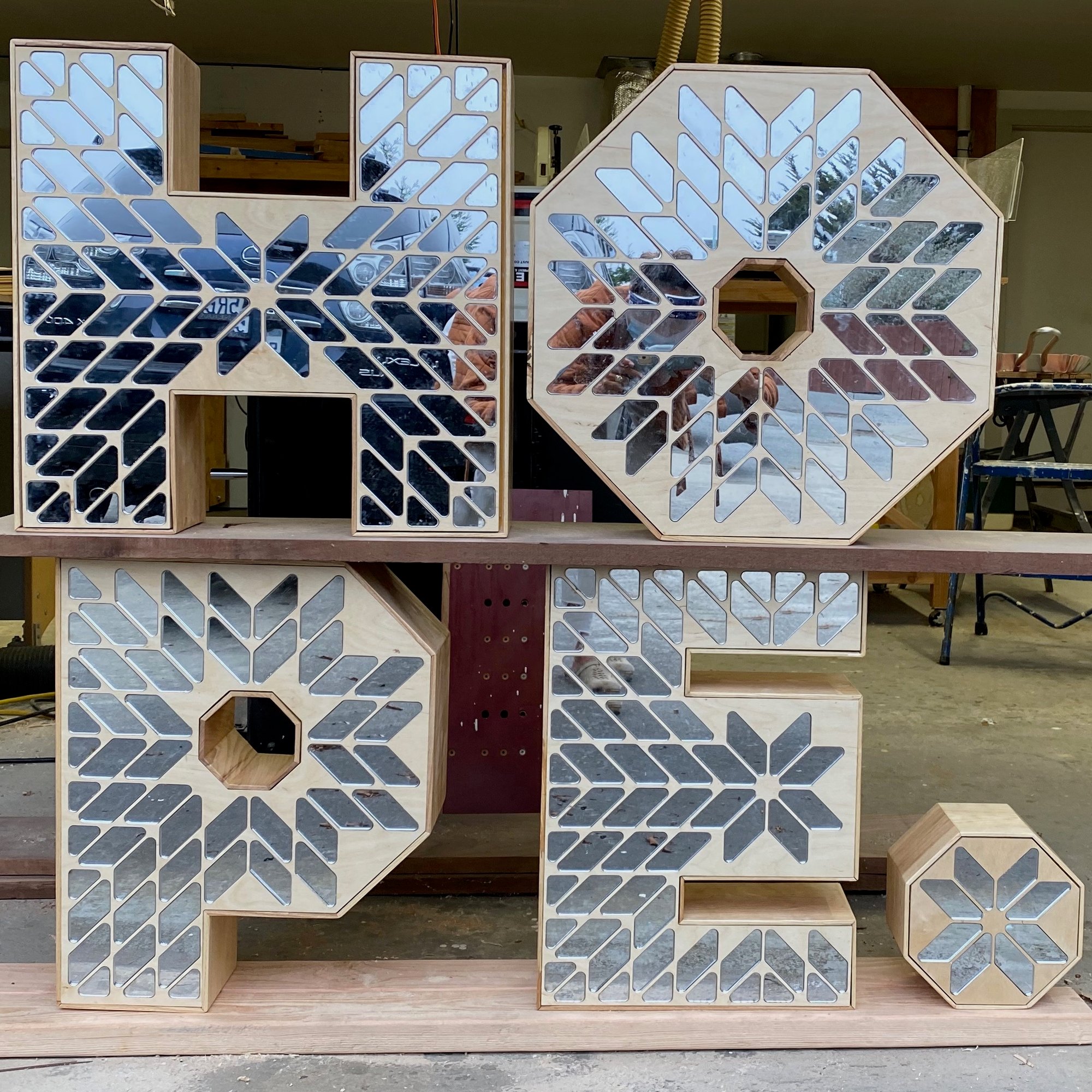 Materials: Wood and Mirrored AcrylicSize: Each letter is approximately 18" x 24"